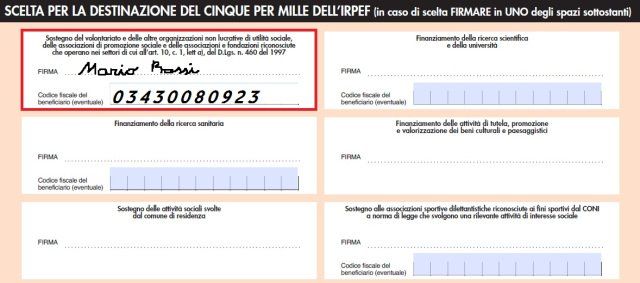 Aiutarci è semplicissimo, basta scrivere 03430080923 nella tua dichiarazione dei redditi, nel riquadro dedicato al 5 x Mille.